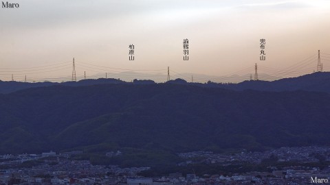 しかしながら、剣山や矢筈山といった剣山地を代表する高峰であっても、京都西山の山々に遮られるため、大文字山からは見えません。