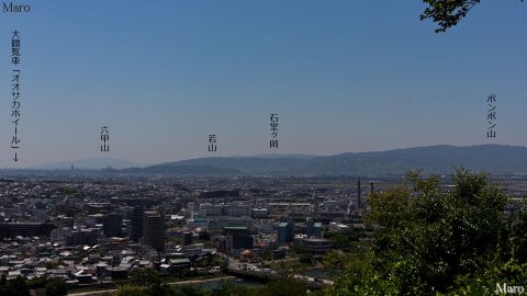 西山や北摂の山の向こうには、兵庫六甲の山々まで見通せます。
