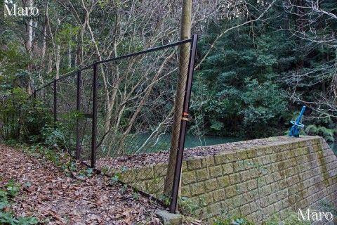 このあたりは分岐が多く、清水山や東大谷山(大谷祖廟)、高台寺山などと繋がっていますが、貯水ダムから少し進み、次の分岐から、直接、展望台方面へ向かって登っていくと、東山山頂公園の展望台の柵の向こうに出てきます。