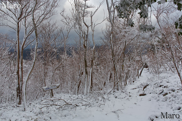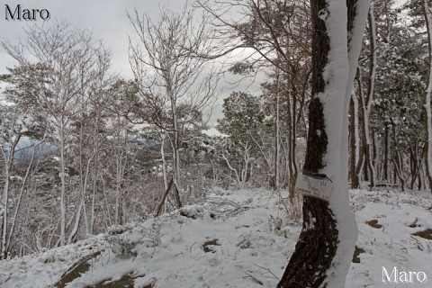 笠山山頂の積雪状況。標高719m。大阪府豊能郡能勢町・京都府亀岡市。
