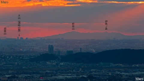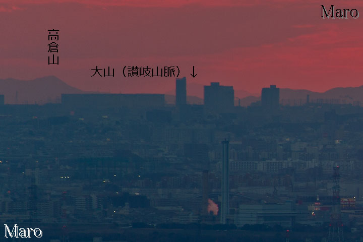 - 京都から明石海峡大橋の向こうに沈む夕日を望む 醍醐山地