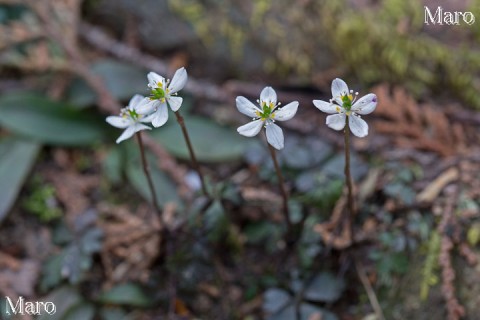 比叡山に咲くシロバナネコノメ(白花猫の目)。
