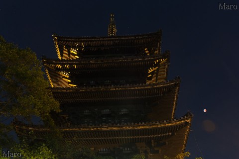 皆既食の終わりと法観寺さんの五重塔(八坂の塔)を見上げる。20時20分。