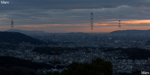 瓜生山の展望地から夕景を眺望。京都、大阪を一望する。京都市左京区。