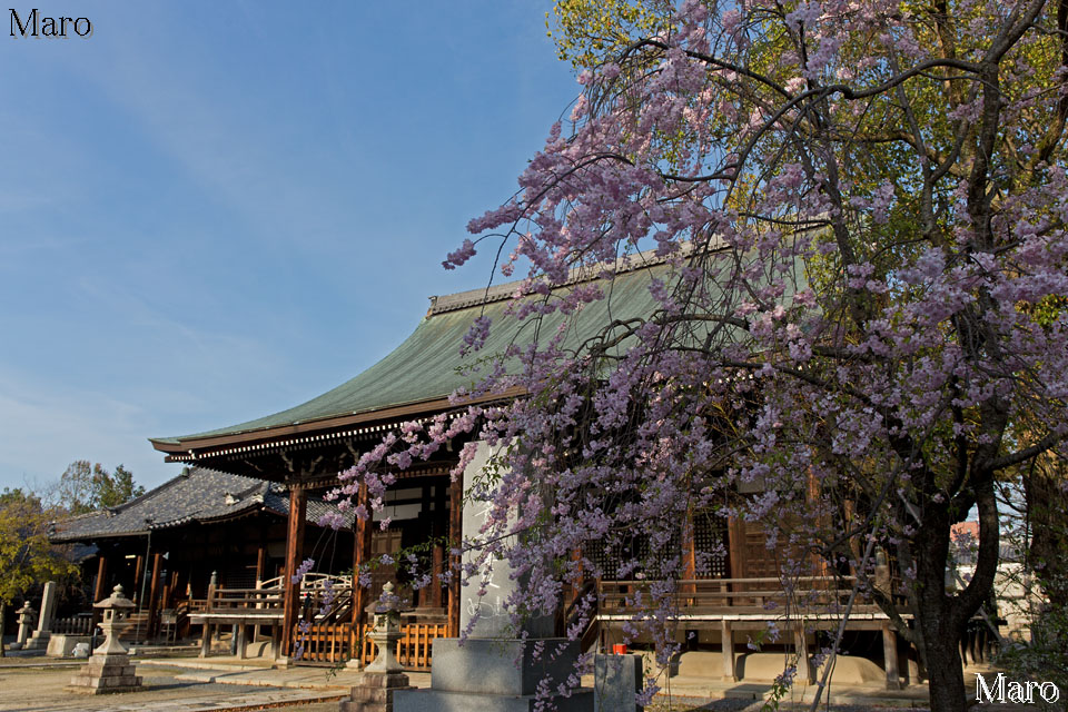 妙顕寺さんの三菩薩堂と八重紅枝垂。