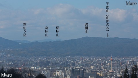 「東山三十六峰」今熊野山から京都タワーと唐櫃越、北摂の剣尾山を遠望する。