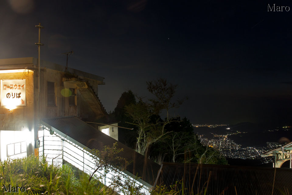 叡山ロープウェイ比叡山頂駅前から眼下に岩倉盆地方面の夜景を望む。