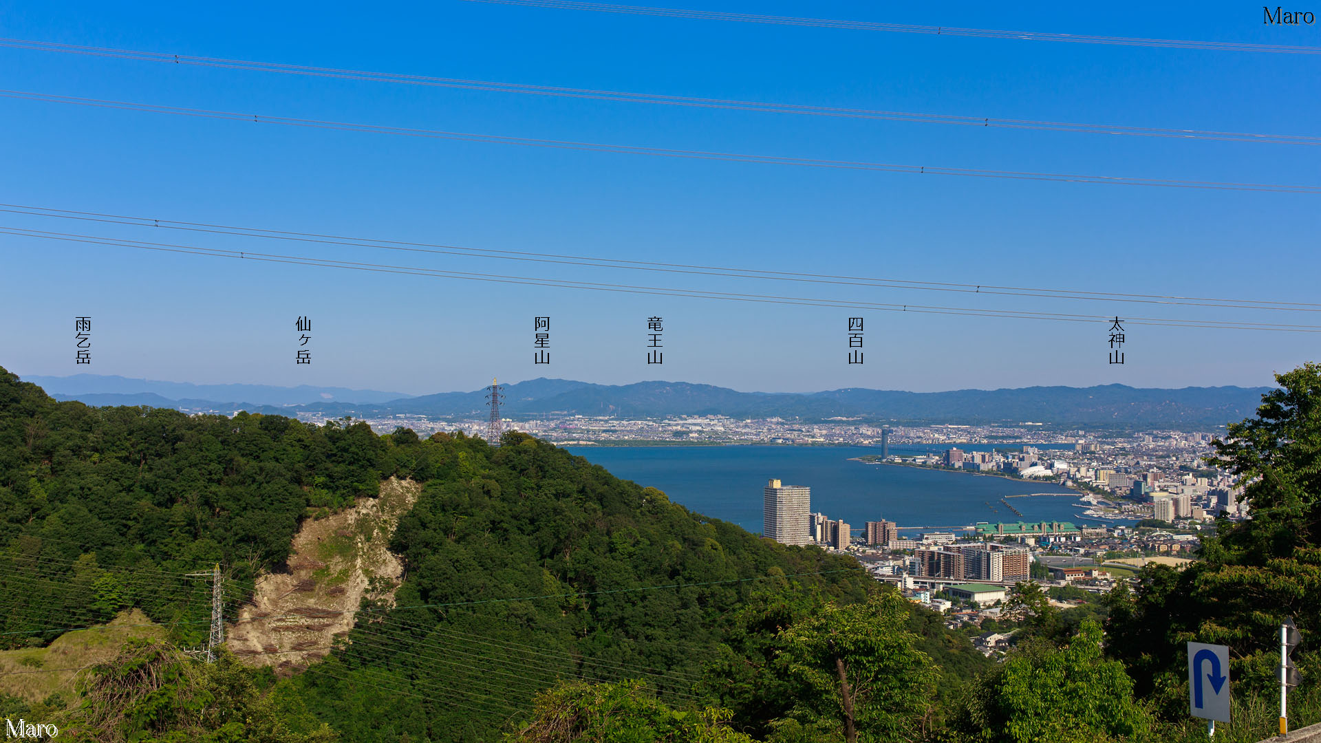 右下には大津港や浜大津が小さく写っていますが、この後、私は山中越から急ぎ近江神宮ランプ・南志賀ランプ方面へ下り、近江神宮さんを参拝し、近くの皇子山古墳を登った後、さらに大津京から浜大津まで歩きました。